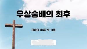 둘째로, “9. 우상을 만드는 자는 다 허망하도다(사람이 자신의 손으로 신상을 만들어 영계를 지배하는 신으로 섬기고 있으니 그것은 제조자인 사람만큼 어리석고 힘이 없는 우상에 불과하다는 것임). 그들이 원하는 것들은 무익한 것이거늘, 그것들의 증인들은 보지도 못하며 알지도 못하니, 그러므로 수치를 당하리라. 10. 신상을 만들며 무익한 우상을 부어 만든 자가 누구냐? 11. 보라, 그와 같은 무리들이 다 수치를 당할 것이라. 그 대장장이들은 사람일 뿐이라. 그들이 다 모여 서서 두려워하며 함께 수치를 당할 것이니라(출20:1-7, 32:1-10, 십계명을 가르쳐 주었음에도 불구하고 선민 이스라엘 자손들이 금송아지를 만들어 출애굽의 신 여호와라고 부르면서 제사를 드리고 축제를 벌이고 있으니 여호와의 진노로 멸절의 위기를 맞이하고 있는 것임). 12. 철공(쇳물을 가지고 물건을 제조하는 장인들)은 철로 연장을 만들고 숯불로 일하며 망치를 가지고 그것(신상)을 만들며, 그의 힘센 팔로 그 일을 하나 (역시 사람에 불과하므로) 배가 고프면 기운이 없고 물을 마시지 아니하면 피로하니라!(신상의 제조자인 장인이 피로한 것처럼 그가 만든 우상도 힘이 약한 것임) 13. 목공(나무로 물건을 만드는 장인들)은 줄을 늘여 재고 붓으로 긋고 대패로 밀고 곡선자로 그어 사람의 아름다움을 따라 사람의 모양을 (예술품이나 신상으로) 만들어 집에 두게 하며, 14. 그는 자기를 위하여(좋은 재질의 나무로 걸작인 예술품이나 신상을 만들고자) (레바논의) 백향목을 베며 디르사 나무(가나안에서 볼 수 있는 cypress, 삼나무임)와 상수리나무(도토리나무를 말함)를 취하며, 숲의 나무들 가운데에서 자기를 위하여 한 나무를 정하며(장차 우상을 빗고자 미리 그 재료가 되는) 나무를 심고 비를 맞고 자라게도 하느니라(그 나무를 자라나게 하시는 이는 오직 하나님이심을 알라는 것임, 고전3:6). 15. 이 나무는 사람이 땔감을 삼는 것이거늘 그가 그것을 가지고 자기 몸을 덥게도 하고 불을 피워 떡을 굽기도 하고 신상을 만들어 경배하며 우상을 만들고 그 앞에 엎드리기도 하는구나!(나무는 아무리 아름다운 예술품이나 우상을 만든다고 하더라도 그 재질은 땔감에 불과하다는 것임) 16. 그 중의 절반은 불에 사르고 그 절반으로는 고기를 구워 먹고 배불리며 또 몸을 덥게 하여 이르기를 아하 따뜻하다! 내가 불을 보았구나 하면서, 17. 그 나머지로 신상 곧 자기의 우상을 만들고, 그 앞에 엎드려 경배하며 그것에게 기도하여 이르기를, 너는 나의 신이니 나를 구원하라 하는도다!(참으로 피조물을 신으로 섬기고 있는 인간들이 어리석고 허망하다는 것임) 18. 그들이 알지도 못하고 깨닫지도 못함은 그들의 눈이 가려서 보지 못하며, 그들의 마음이 어두워져서 깨닫지 못함이니라(창3:6, 사6:9-10, 세상 욕심에 눈이 어두워지고 여호와말씀에 대한 영적인 깨달음이 없기에 그러한 우매한 일을 자행한다는 것임). 19. 마음에 생각도 없고 지식도 없고 총명도 없으므로 내가 그것의 절반을 불 사르고 또한 그 숯불 위에서 떡도 굽고 고기도 구워 먹었거늘, 내가 어찌 그 나머지로 가증한 물건을 만들겠으며, 내가 어찌 그 나무 토막 앞에 굴복하리요? 말하지 아니하니(끝까지 선민들은 선지자들이 전달하고 있는 여호와의 말씀을 외면하고 우상을 섬기며 세상 탐욕을 이루고자 하니), 20. 그는 재를 먹고 허탄한 마음에 미혹되어, 자기의 영혼을 구원하지 못하며, 나의 오른손에 거짓 것이 있지 아니하냐? 하지도 못하느니라(우상과 더불어 여호와의 진노의 심판을 받게 되고 마는 것임, 계19:20)“(사44:9-20);
