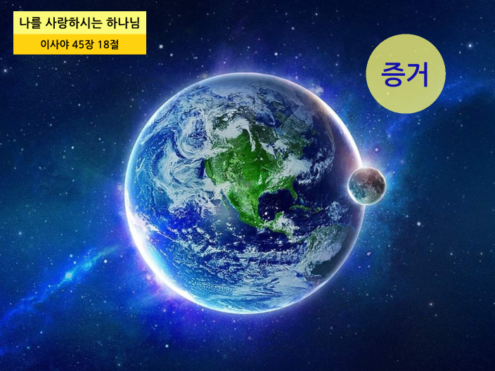 4) 둘, “그가 땅을 지으시고 그것을 만드셨으며, 그것을 견고하게 하시되, 혼돈하게 창조하지 아니하시고, 사람이 거주하게 그것을 지으셨으니(he who fashioned and made the earth, he founded it; he did not create it to be empty, but formed it to be inhabited)”(사45:18b); 이제부터는 말씀을 풀이하기가 쉽습니다. 하나님께서 자신의 능력이 스며들어 있는 물로써 온 세상에 흩어져 있는 땅이라고 하는 소재를 압박하시자 그것들이 뭉쳐져서 단단하게 됩니다. 그 결과 사람들이 살 수 있는 견고한 터전이 형성되는 것입니다. 이제 혼돈과 흩어짐의 시대는 끝나고 사람이 살 수 있는 땅과 그 위에서 동식물이 자라고 살아갈 수 있는 시대가 전개되고 있습니다. 그것은 창세기 제1장에서 모세가 이미 상세하게 기록하고 있는 내용입니다. 셋, “나는 여호와라. 나 외에 다른 이가 없느니라(he says; “I am the Lord, and there is no other”, NIV)”(사45:18c); 사람들이 살 수 있는 땅을 만들어 주신 분이 바로 여호와 하나님이십니다. 그러므로 사람들이 의지하고 함께 살아갈 수 있는 신(神)도 하나님 뿐이십니다. 그 여호와 하나님께서 모든 사람들의 유일한 주인(the Lord)이시라고 이사야가 여기서 말하고 있는 것입니다; “나는 여호와라(I am the Lord)”(사45:18ca).