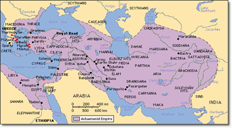 (3) 셋째, 본문에서 바사 왕 고레스가 여호와의 도우심을 얻어 공의를 행하는 제국 페르시아를 건설하고 있다는 의미를 드러내고 있습니다(사45:1-8). 그러나 그것 역시 세상의 제국입니다. 그러므로 그의 제국은 팽창을 계속하게 됩니다. 그 때문에 동진하는 그리스의 알렉산더 대왕과 격돌하고 마침내 주전 330년에 헬라에 의하여 멸망을 당하고 맙니다. 그러나 페르시아제국은 광대한 영토를 다스리기 위해 역참제, 총독 제도(사트랍)를 도입하고 도량형을 통일했으며, 다양한 종교와 문화를 인정하는 놀라운 관용정책을 실시하였기에 세상적으로는 공의로운 나라라고 볼 수가 있을 것입니다.