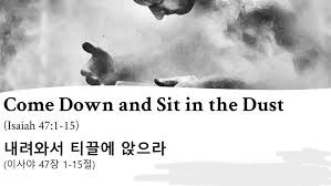 1) 하나, “1. 처녀 딸 바벨론이여, 내려와서 티끌에 앉으라”(사47:1a); 여호와 하나님이 이사야를 통하여 바벨론을 ‘처녀 딸’이라고 부르고 있는 것은 굉장한 의미를 지니고 있습니다; ①‘처녀’라고 하는 것은 순결하다는 의미입니다. 이사야는 그 의미를 사용하여 이미 메시아를 잉태하게 되는 여인을 ‘순결한 처녀’(사7:14)라고 부르고 있습니다. ②‘딸’이라고 하는 것은 사랑스러운 여인이라는 의미입니다. 그것은 천상에서 미(美)의 천사장 ‘루시엘’에게 어울리는 칭호입니다(사47:1c). 그토록 순결하며 하나님의 사랑을 받고 있던 루시엘이 그만 교만하여 창조주 하나님을 무시합니다. 자신의 보좌를 창조주 하나님만큼 높이고자 합니다(사14:13-14). ③그 때문에 천상에서 지상으로 내어 쫓기게 됩니다(사14:15). 그와 같은 전철을 세상나라 신바벨론제국이 밟게 될 것이라는 이사야의 예언입니다(사14:4, 12, 16-19, 47:1a).