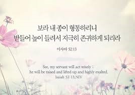 1) 하나, “13. 보라 내 종이 형통하리니”(사52:13a); 보통 ‘형통’의 의미에 대하여, 계획한 것이 막힘이 없이 잘 성취되어 세상적인 성공을 가져오고 있다는 뜻으로 사용하고 있습니다. 그러나 여기서 ‘여호와 종의 형통’은 그 의미가 좀 다릅니다. 주인이 맡긴 사명을 하나님 보시기에 잘 완수하였다는 뜻입니다. 그러므로 세상적으로 보면, 실패일 수도 있습니다. 크고 화려한 승리가 아닐 수도 있습니다. 하지만 하나님께서는 그 사명감당을 크게 기뻐하십니다. 그러므로 놀라운 상급을 주십니다.