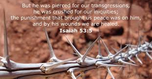 1) 하나, “5. 그가 찔림은 우리의 허물 때문이요, 그가 상함은 우리의 죄악 때문이라”(사53:5a); 훗날 메시아는 십자가에서 그 시신이 땅으로 내려질 때에 로마병정에 의하여 창으로 옆구리를 찔리게 됩니다. 그때 피와 물이 쏟아져 나옵니다(요19:34). 그같이 일회성인 찔림에 의하여 가벼운 사람들의 허물은 사함을 받게 됩니다. 반면에 사람들의 죄악은 무겁습니다. 그래서 사함의 방법이 간단하지 않습니다. 대속의 죄사함의 길을 찾기 위하여 메시아가 공생애를 살아가면서 온갖 고초를 겪게 됩니다. 그리고 유대교지도자들로부터 정죄 되고 로마총독에 의하여 심문 받게 됩니다. 결국에는 십자가 극형에 처해지게 됩니다. 그 모든 육신적 정식적 고통으로 말미암아 메시아의 몸이 지치고 크게 상하게 됩니다. 그와 같은 오랜 고통과 상함이 바로 사람들의 죄악을 담당하게 되는 과정이라고 하겠습니다.