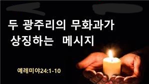 (2) 첫째, 제1-2절입니다; “1. 바벨론의 느부갓네살 왕이 유다 왕 여호야김의 아들 여고냐와 유다 고관들과 목공들과 철공들을 예루살롐에서 바벨론으로 옮긴 후에 여호와께서 여호와의 성전 앞에 놓인 무화과 두 광주리를 내게 보이셨는데, 2. 한 광주리에는 처음 익은 듯한 극히 좋은 무화과가 있고, 한 광주리에는 나빠서 먹을 수 없는 극히 나쁜 무화과가 있더라”(렘24:1-2); 다음과 같이 두 부분으로 나누어서 살펴보고자 합니다;