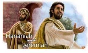 2) 선지자 하나냐는 정반대로 주장하고 있습니다. 신바벨론이 패배할 것이며 지금까지 느부갓네살 황제에게 조공을 바치고 있는 그 멍에를 모든 왕국들이 벗어버리게 된다는 것입니다(렘28:1-2). 특히 바벨론으로 끌려간 유대왕국의 모든 인질과 보물들이 2년 내에 전부 반환된다는 기쁜 소식을 여호와께서 자신에게 예언의 말씀으로 주셨다는 것입니다(렘28:3-4). 그 말에 대하여 예레미야가 반발하고 있습니다. 그것은 여호와의 예언의 말씀의 취지에서 벗어나고 있는 거짓 예언이라는 것입니다. 그 이유가 3가지입니다; ①여호와께서는 거짓선지자에게 예언을 주시지 아니하시며(렘28:15) ②수많은 선지자들의 예언의 취지에서 벗어나고 있으며(렘28:8) ③훗날 역사가 신바벨론의 승리로 나타날 것이기 때문입니다(렘28:9);