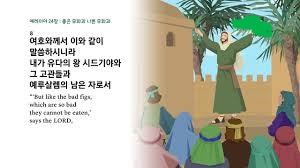 (5) 본문 제8-10절에서 선지자 예레미야는 여호와가 보낸 선지자를 배척하고 죽인 자들에 대한 여호와의 진노와 재앙이 어떠하며 또한 나쁜 무화과를 좋은 무화과로 변화시키는 여호와의 역사가 어떠한 지를 기록하고 있습니다. 구절풀이를 통하여 그 내용을 알아봅니다;