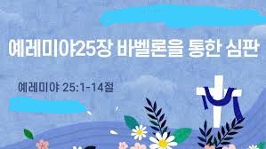 제목; “신바벨론제국이 등장하면 다윗왕조 유대왕국이 멸망을 당하며 선민들이 사라진 세상에 여호와의 역사심판이 시작된다는 예레미야의 예언”(렘25:1-38)