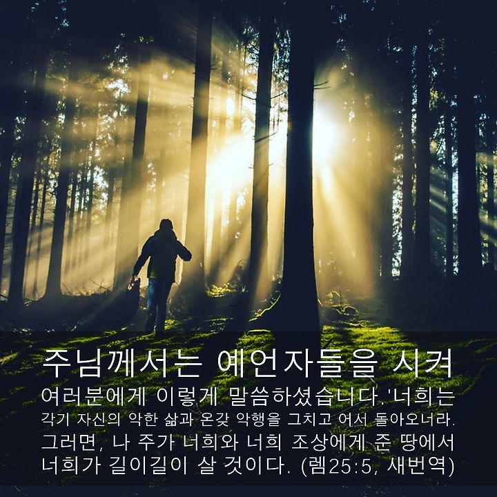 (3) 둘째, 제4-5절입니다; “4. 그러므로 여호와께서 그의 모든 종 선지자를 너희에게 끊임없이 보내셨으나, 너희가 순종하지 아니하였으며, 귀를 기울여 듣지도 아니하였도다. 5. 그가 이르시기를, 너희는 각자의 악한 길과 악행을 버리고 돌아오라. 그리하면 나 여호와가 너희와 너희 조상들에게 영원부터 영원까지 준 그 땅에 살리라”(렘25:4-5); 다음과 같이 3부분으로 나누어서 살펴보고자 합니다;