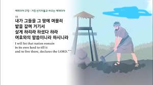 (9) 셋째, 제11절입니다; “11. 그러나 그 목으로 바벨론의 왕의 멍에를 메고 그를 섬기는 나라는, 내가 그들을 그 땅에 머물러 밭을 갈며 거기서 살게 하리라 하셨다 하라. 여호와의 말씀이니라 하시니라”(렘27:11); 역시 다음과 같이 두 부분으로 나누어서 살펴보고자 합니다;
